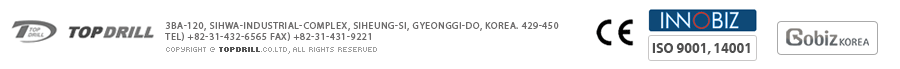 Top Drill is a manufacturing company specializing in DTH Hammers and Bits. We utilize proprietary technology and patents to manufacture high quality and cost competitive products. In Korea, Top Drill has established a reputation as the #1 company in development, quality, and service in our industry. In recent years, our reputation has spread worldwide. More and more contractors across Europe, North America and Asia are choosing our tough and reliable products. |